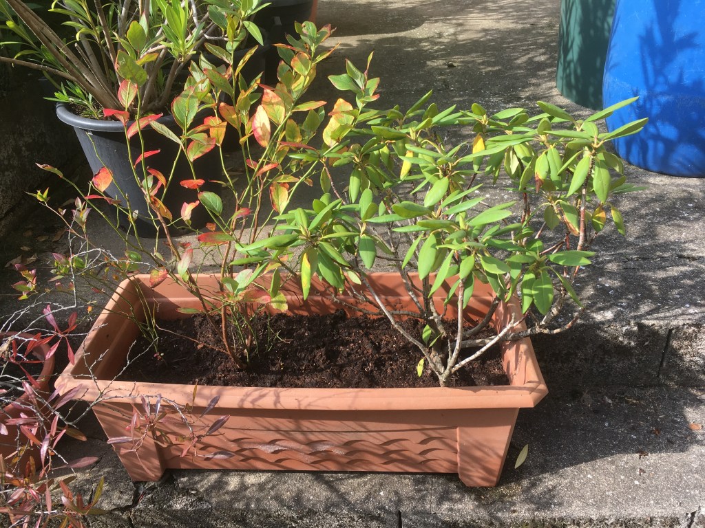 Diese Woche habe ich 3 Pflanzen aus meinem Garten „gerettet“. Zwei Heidelbeeren und ein Rhododendron waren an schlechten Plätzen und in der falschen Erde gesetzt. Jetzt haben Sie die richtige Erde und bekommen extra Aufmerksamkeit in dem Beet.
