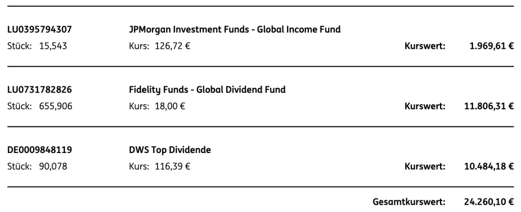 | ING AT | 23.812,68 | 4,3 % | 24.065,68 | -1,05 % | Fonds Sparpläne |