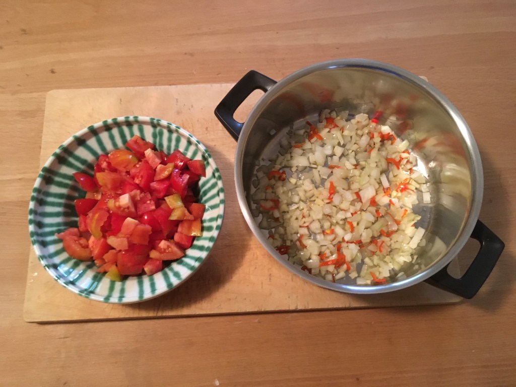 In meinem Garten findet sich immer noch Gemüse. Ein frisches Letscho aus den Paradeisern hat diese Woche nochmals geschmeckt 😋
