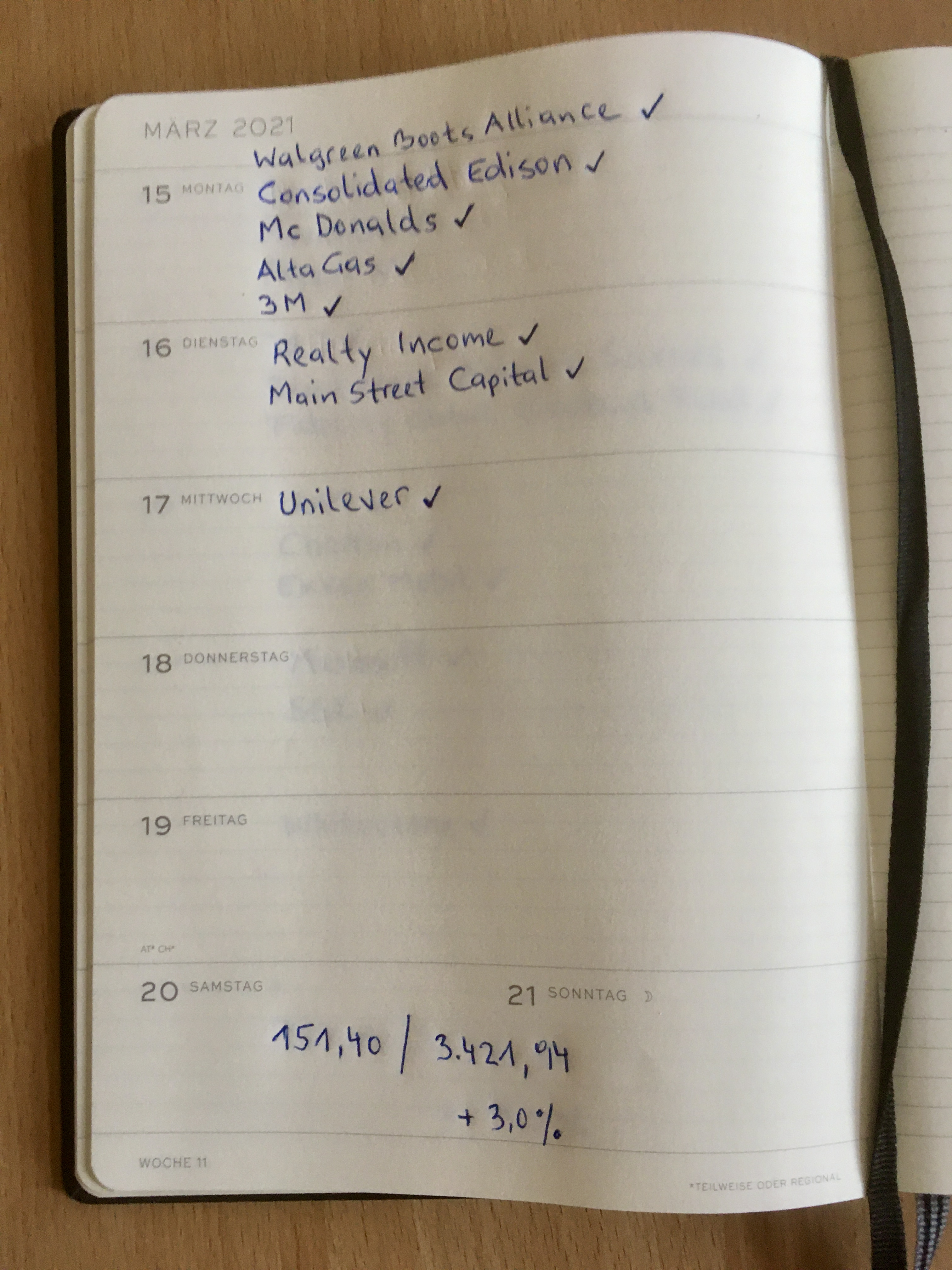 Nun zum Einkommen der Kalenderwoche 11 und im März liege ich mit 952,89 noch knapp unter 1 TEUR:
