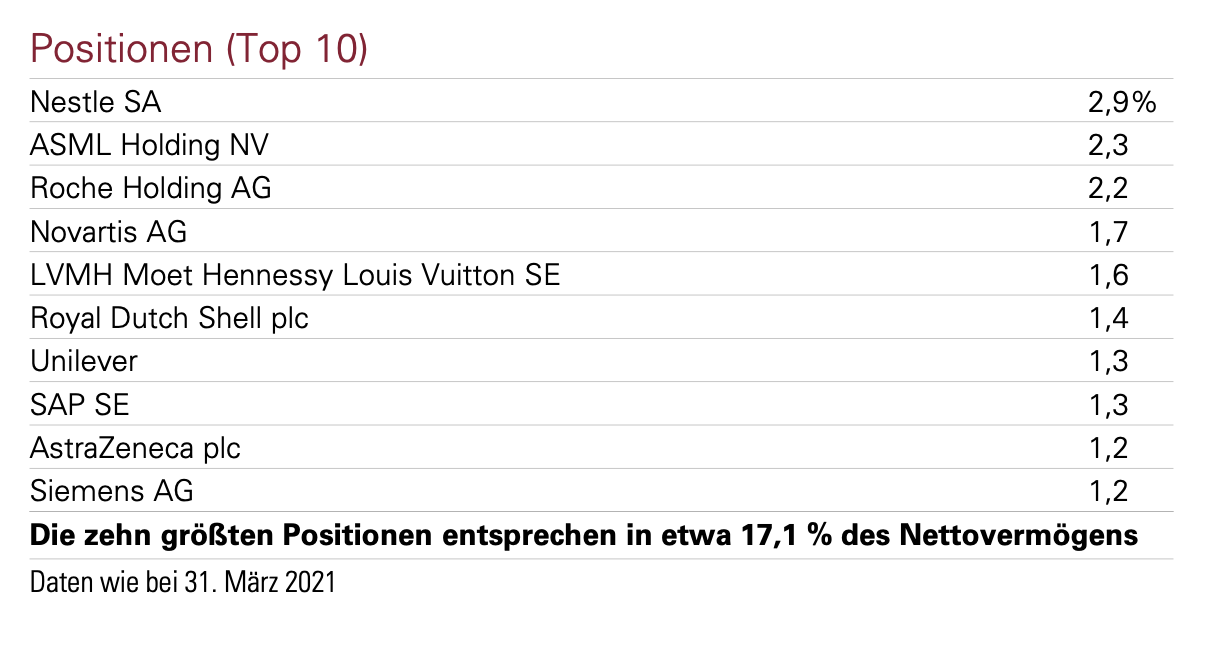 Der Start von Vanguard ETF Europa Fonds war etwas unüberlegt. Den Sparplan habe ich mit Mai beendet und jetzt habe ich mir einmal die 10 Top Investments angeschaut: