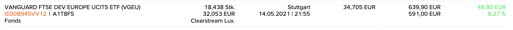 Da ich faul und keinen Zwang sehe dafür ein Erstinvestment zu suchen wandert diese rd. 600 EUR in die Liquidität für aktuelle Sparpläne für 2021.