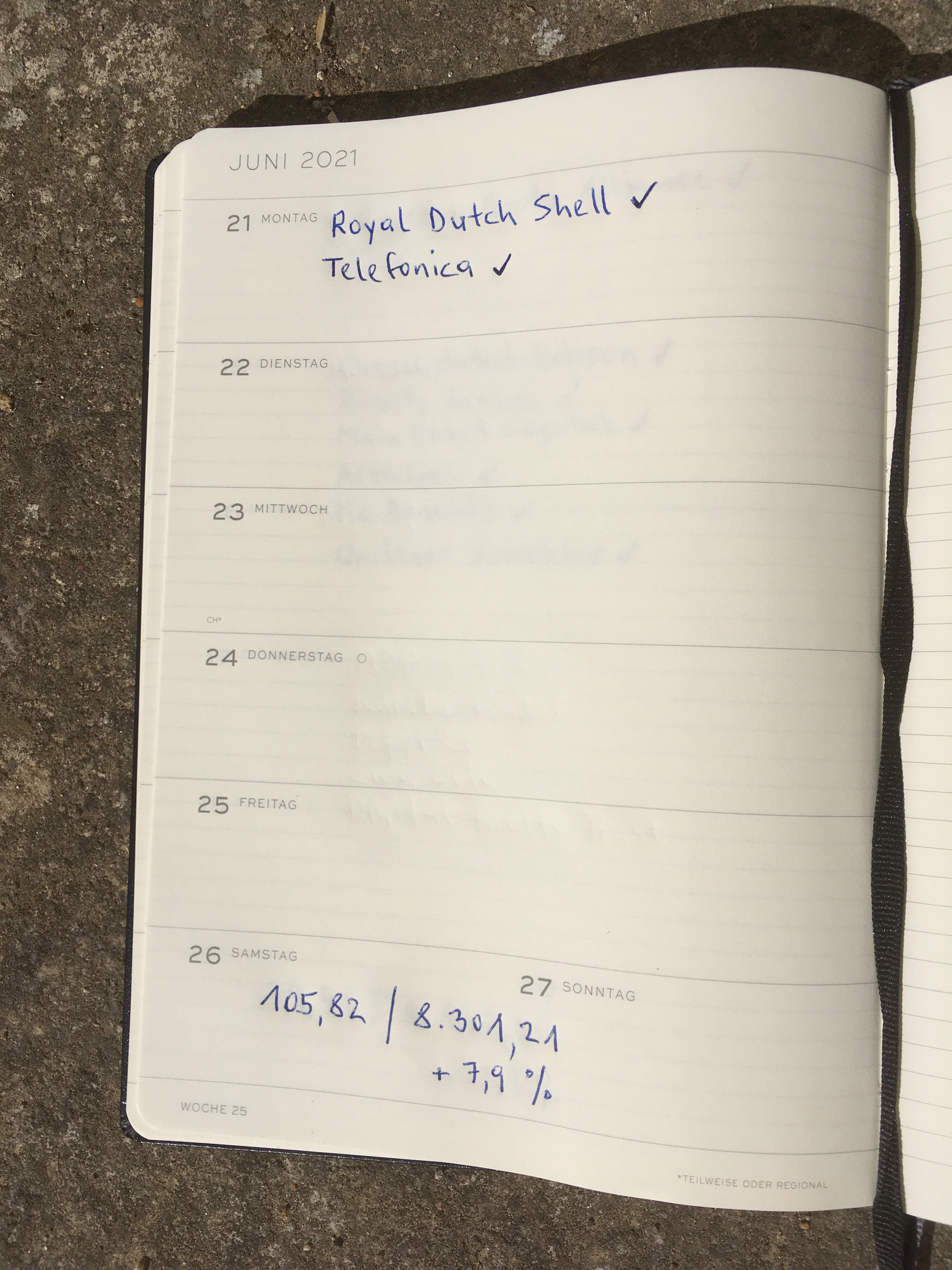 Diese Woche gab es nur zwei Gutschriften, Royal Dutch Shell und die Differenz zur Aktiendividende von Telefonica…