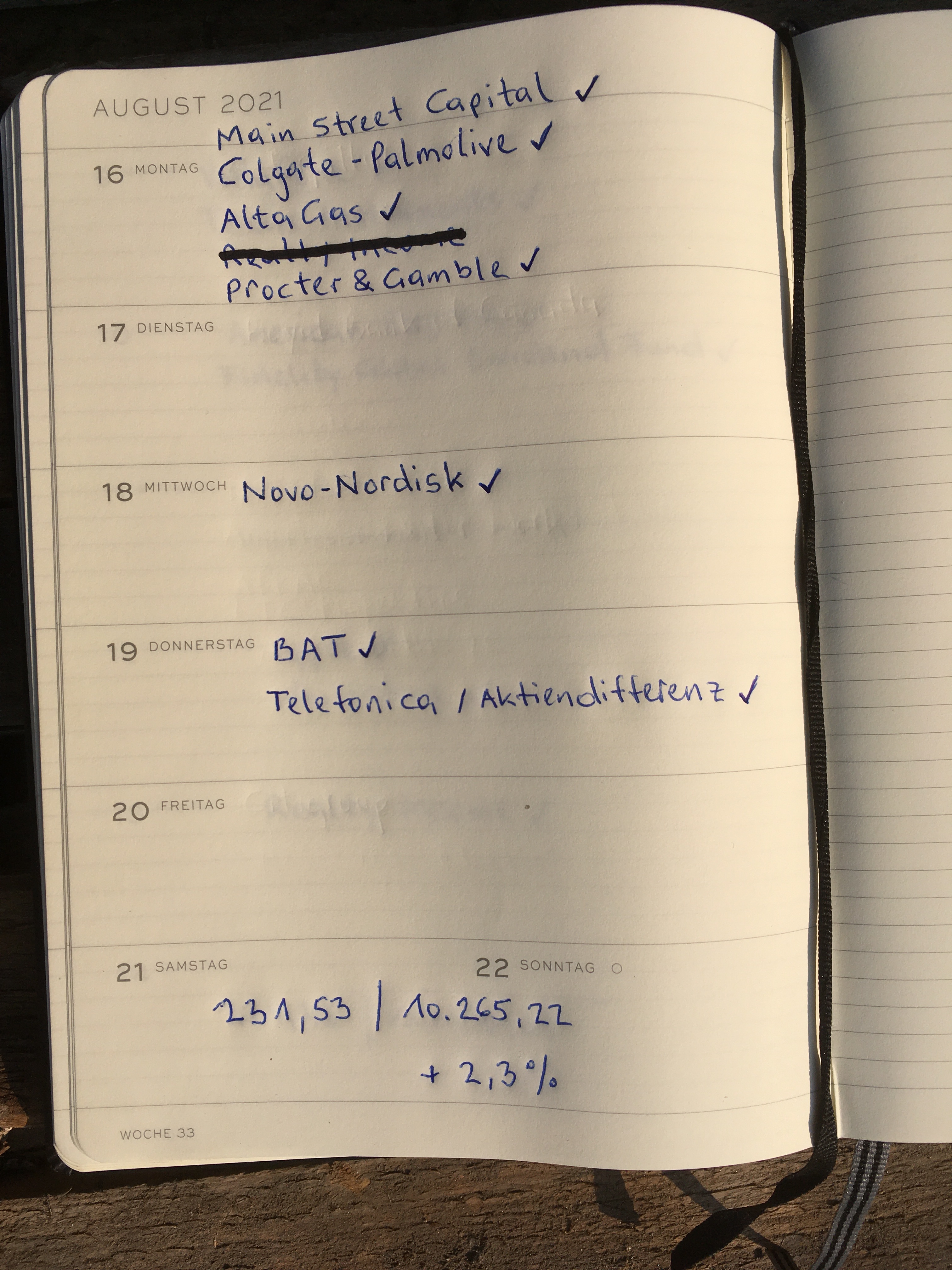 Nun zum Einkommen der Kalenderwoche 33 / 2021 und der Blick in die analoge Übersicht: