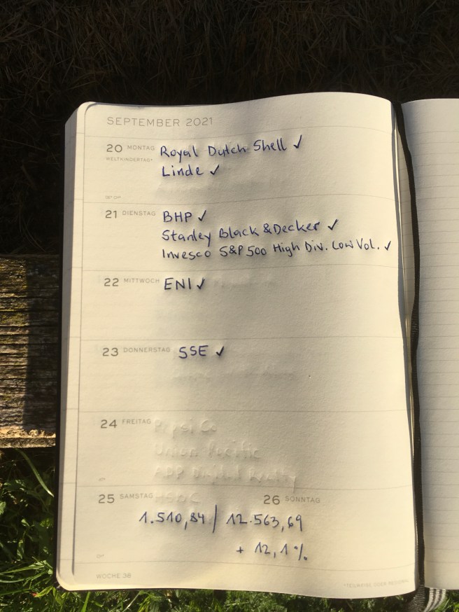 Nun zum erfreulichen Dividenden Einkommen der KW 38 / 2021:
