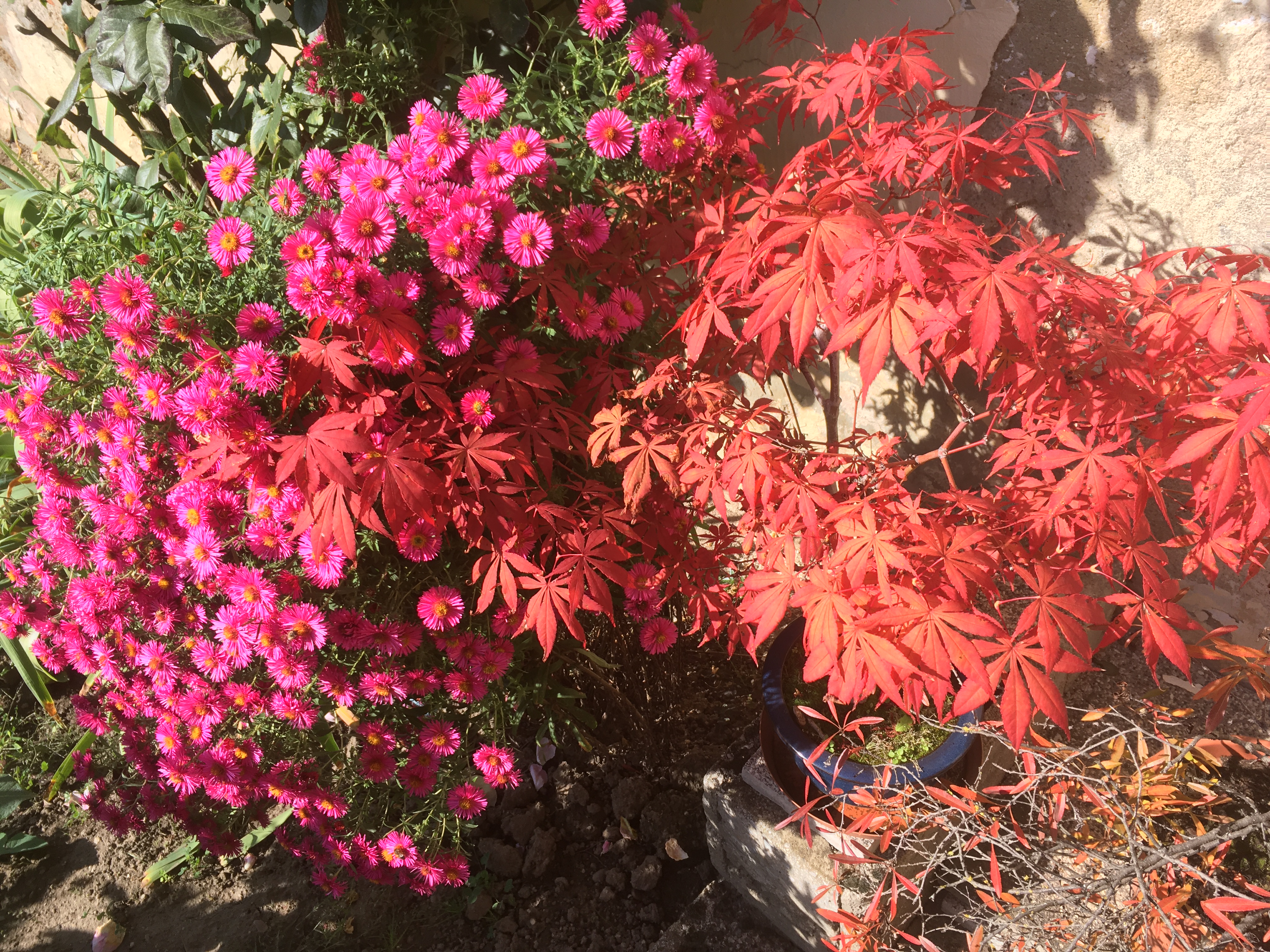 Die sonnigen Herbsttage zeigen mit prächtigen Farben auch sehr schöne Ecken in meinem Garten: