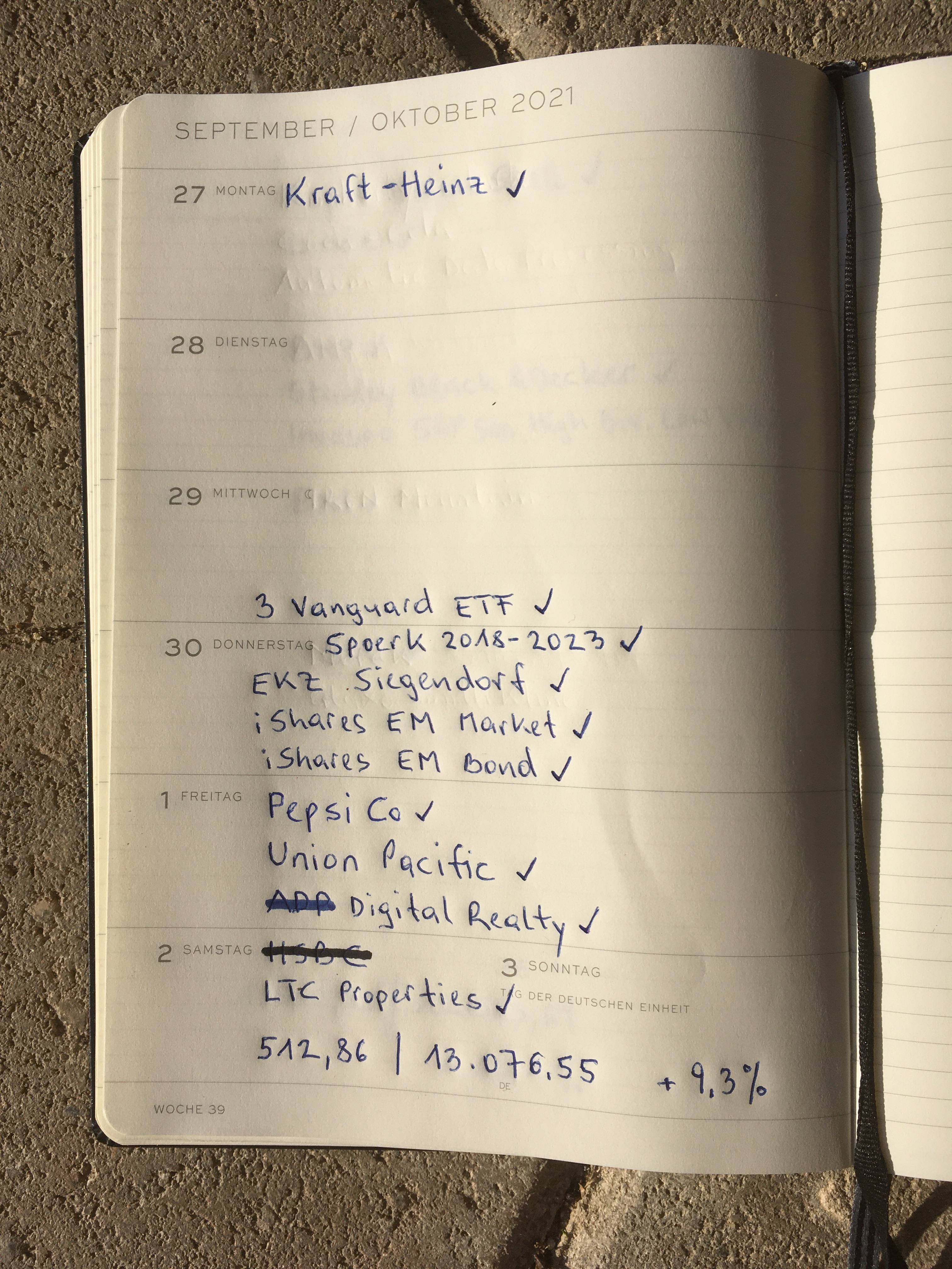 Nun zum Einkommen in der Kalenderwoche 39 / 2021. Diese zeigt das Monatsende von September und den Start in den Oktober: