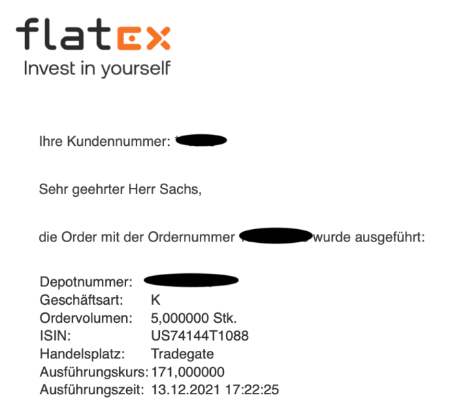 Der aktuelle Kurs in EUR lag so bei 170 bis 175 und ich beschloss mir 5 Stück zu 171 in mein Depot zu legen…