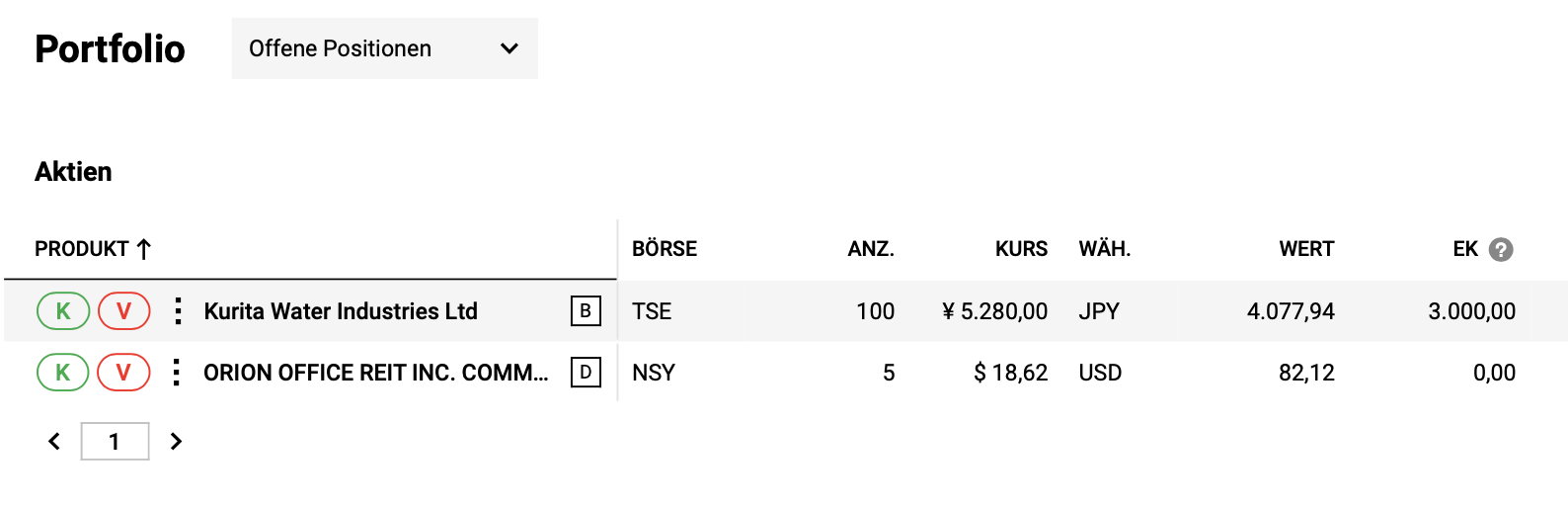 Neu Orion Office – Es ist eine Ausgliederung von Realty Income. Ich hatte das mal in den Medien gelesen und nun hat DEGIRO bei mir 5 Stück eingebucht. Die ursprünglichen Realty Income wurden zwischenzeitlich bereits zu Flatex übertragen.