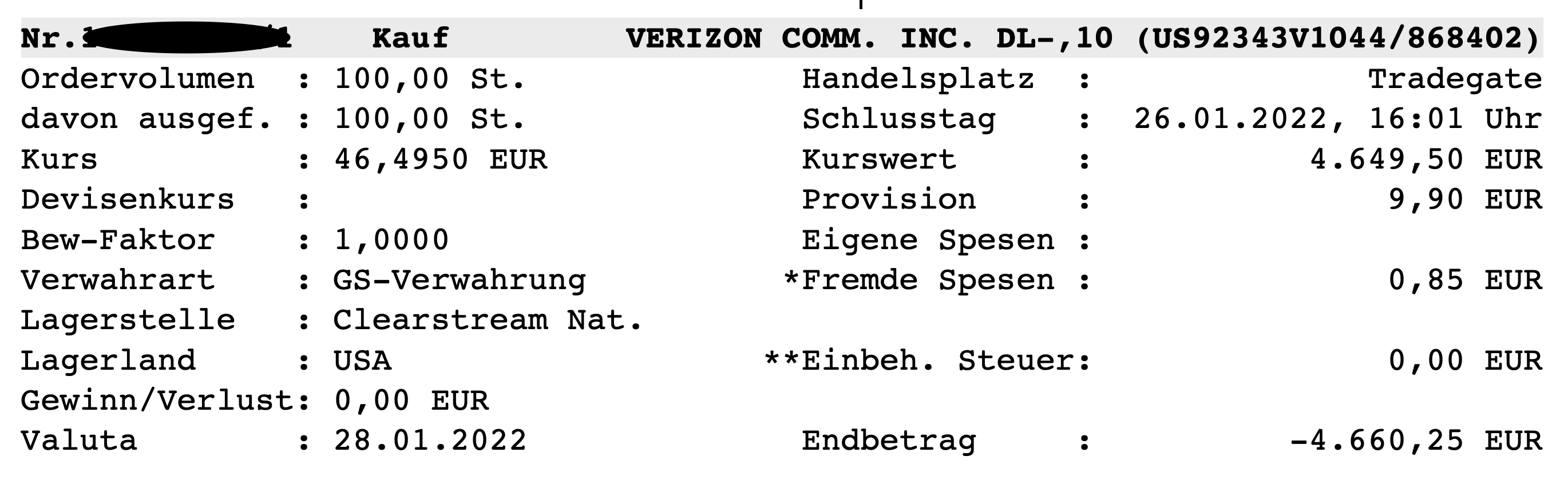 Nun folgte die zweite Kaufposition von Verizon