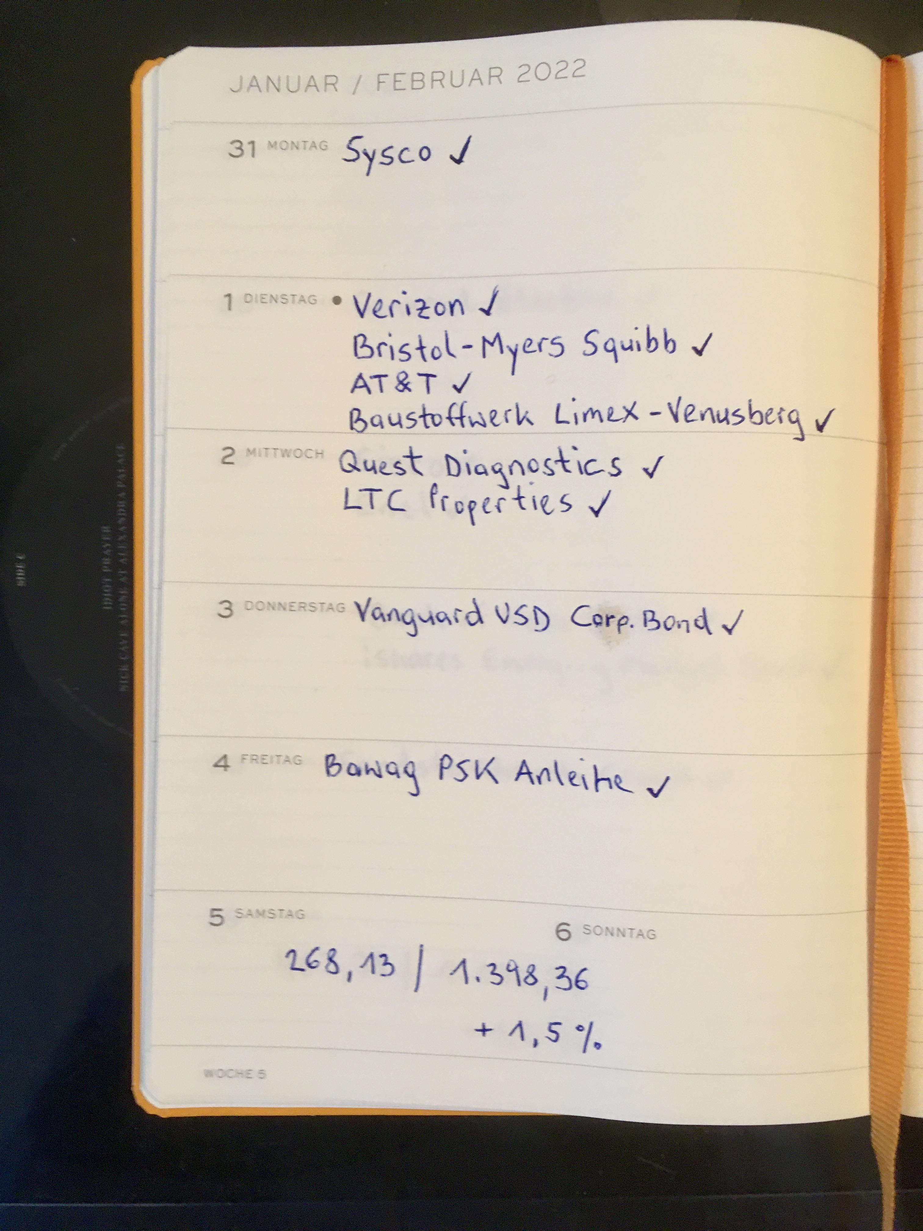 Nun zum Dividenden Einkommen Kalenderwoche 5 / 2022: