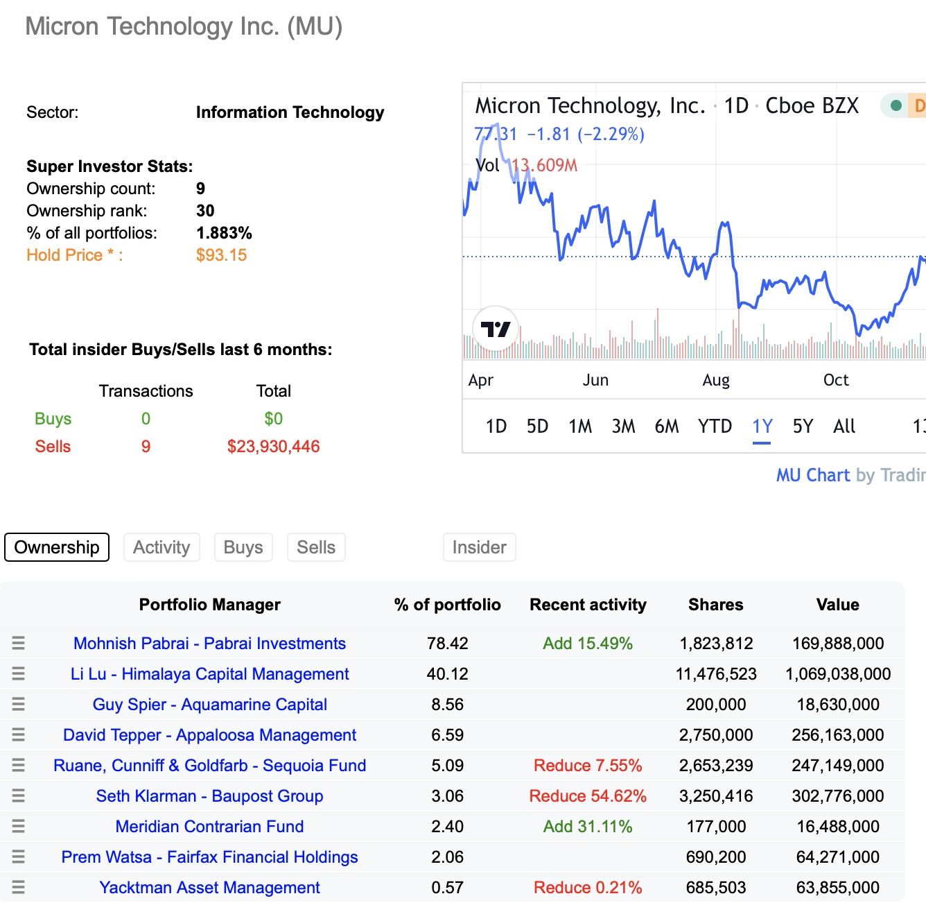 interessante Wahl mit Micron Technology. Decke die Branche der Halbleiter mit ähnlich Werten ab. Wohl von der Bewertung her nichts für dich aktuell, aber zukünftig: Broadcom (AVGO). Tatsächlich haben sie sich wieder nach einem kurzen Absacker nach oben gearbeitet. Immerhin noch knapp 40 US-Dollar unter dem ATH.