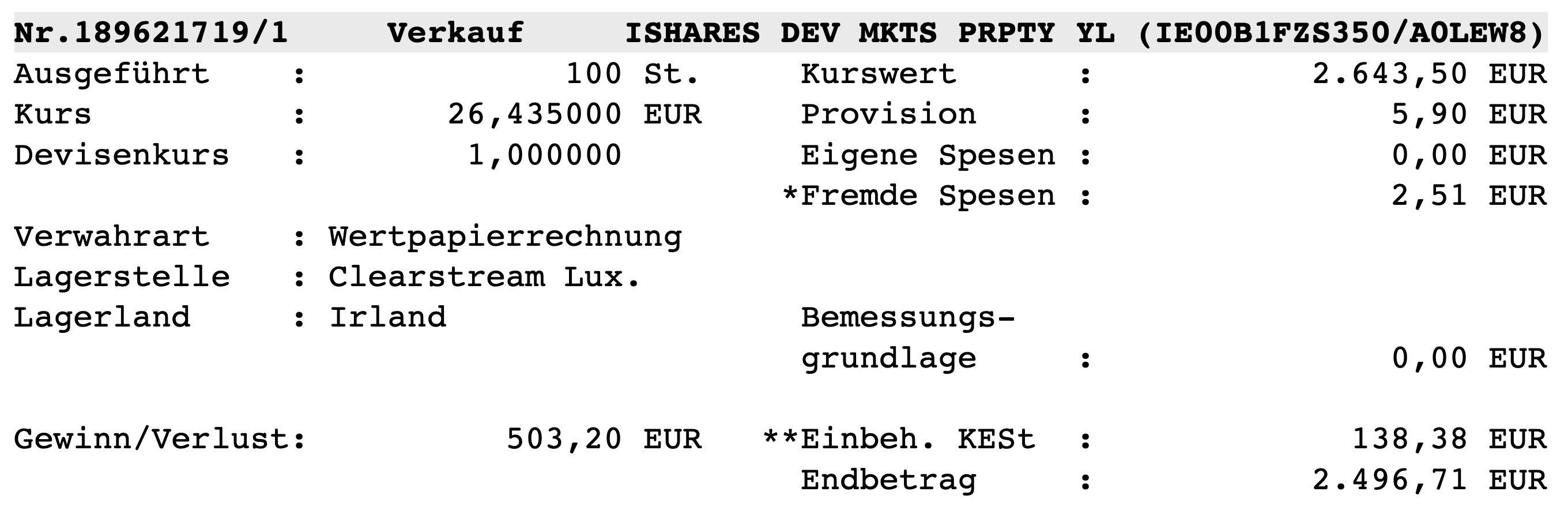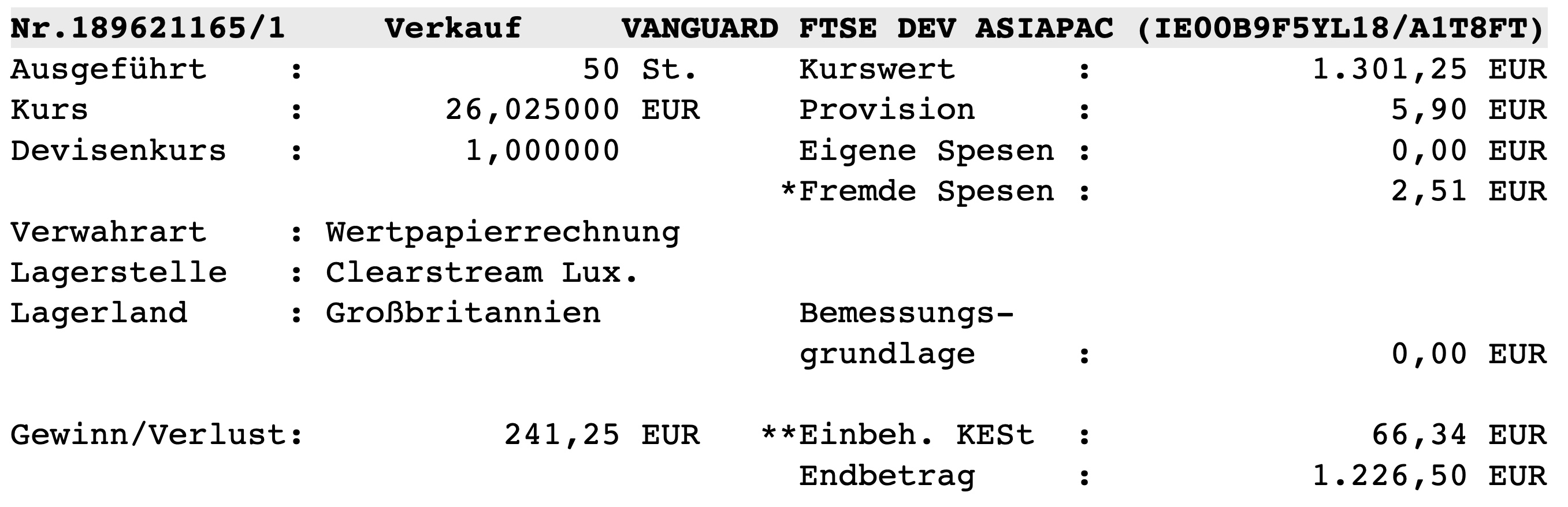 Somit ergaben sich 3 ETF Verkäufe inkl. Gewinne und abzüglich Steuern und Spesen: