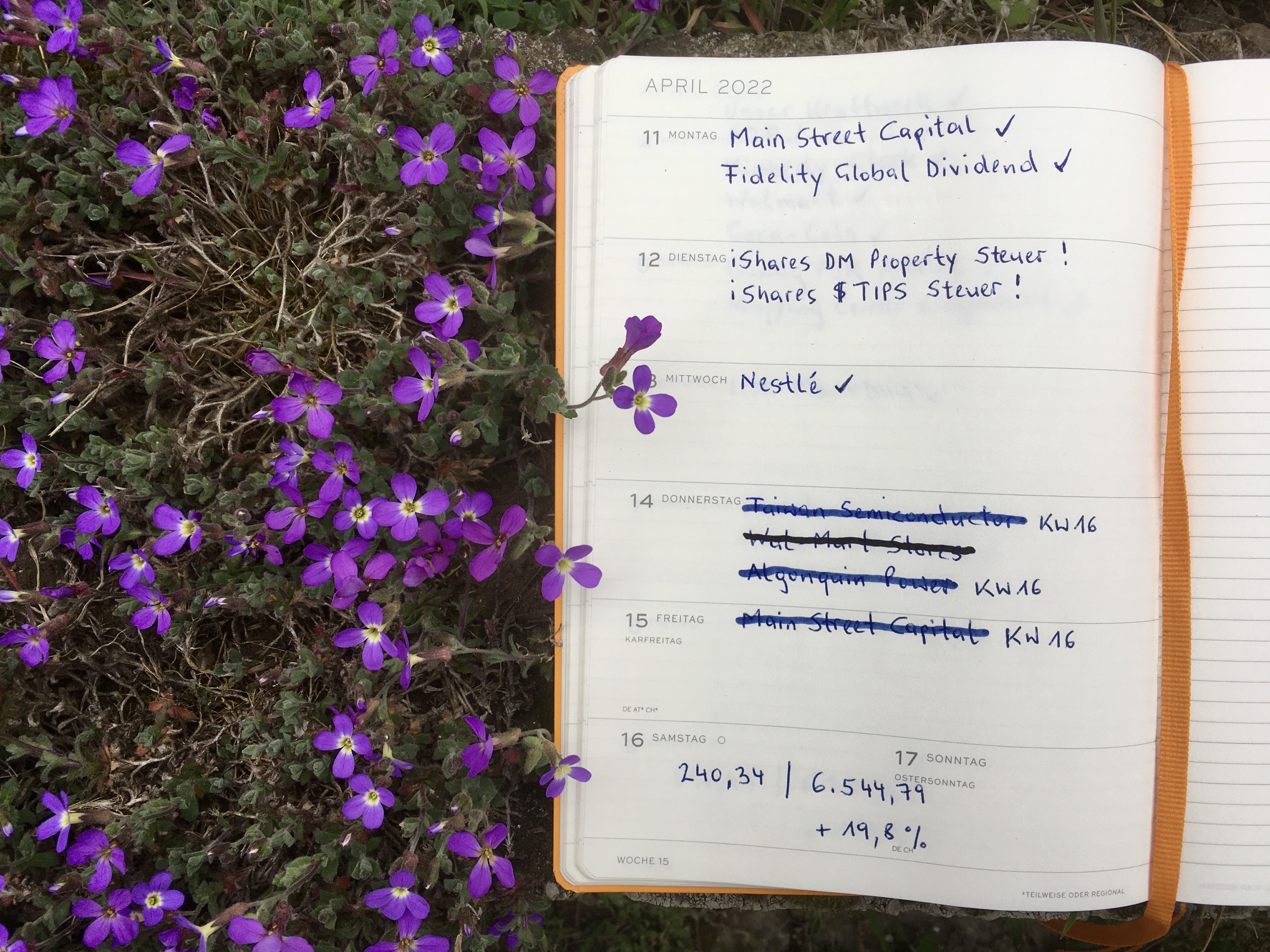 Bisher wurde von Degiro auch bei Feiertagen oder Samstagen Dividenden gutgeschrieben. Flatex agiert eher wie eine Behörde, am Donnerstag wurde der Rollladen hochgeklappt und wahrscheinlich erst wieder am Dienstag nach Ostern geöffnet. Daher verschieben sich einige kleine Dividendenpositionen in die KW 16…