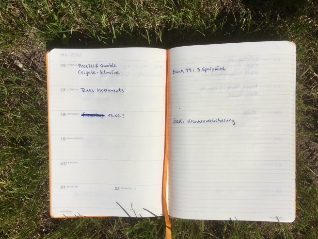 Wer meine wöchentlichen Einkommen verfolgt der kennt auch meinen Kalender. Bisher hatte ich den als Forecast und Check-Liste meiner Einkommen aus Wertpapieren verwendet. Jedes Buch hat ja zwei Seiten und die „rechte“ Seite war von mir bisher vernachlässigt worden.