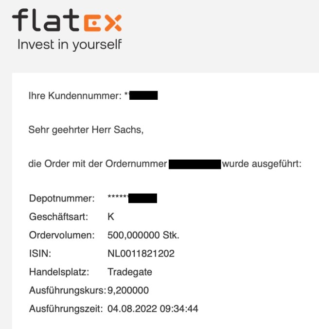 Die Reihenfolge war Kauf für die ING Group, Verkauf einer Wertpapierposition mit Gewinn und mit diesem auch die Ausbezahlung meines Margin Kredits. Der Flatex-Kredit aus dem Einkaufsrahmen soll wieder auf Null stehen, auch wenn es mir keine schlaflosen Nächte oder Bedenken gab – ohne Kredit geht es meinem Milchmädchen ohne Schulden mit 4,9% Zinsbelastung einfach besser 😇