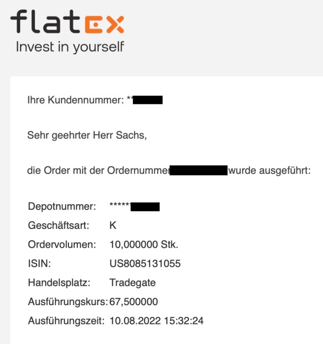 Hier der Kauf bei Flatex…