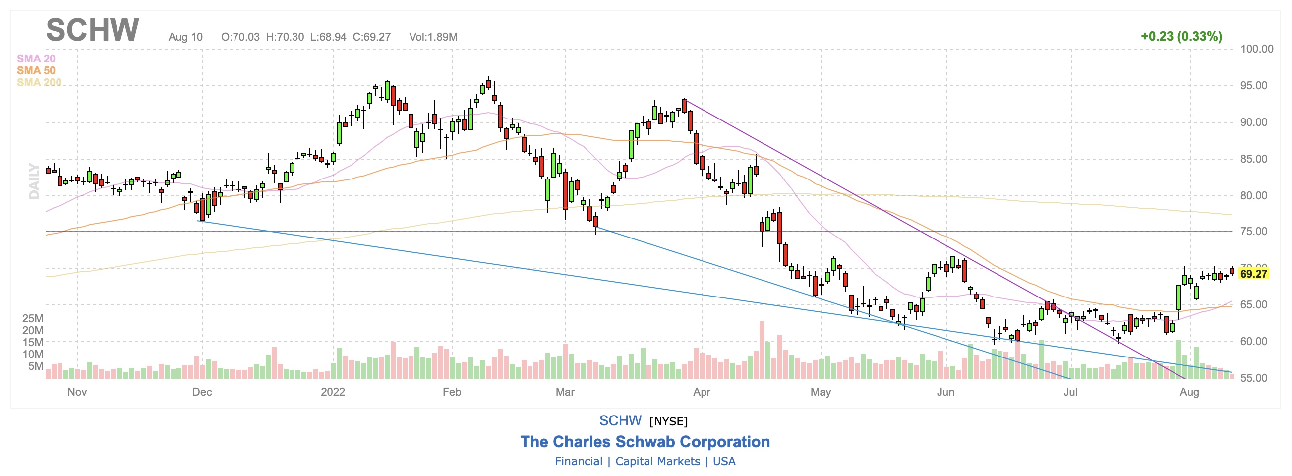 Weiters fehlt mir Ende August auch einen Dividendenzahler – mit Citigroup und Charles Schwab passt das nun für mich.