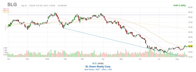 SL Green Realty – ist ein US REIT der sich auf Büroimmobilien in New York City und Manhattan fokussiert ist. Da das Thema Büros bei Corona schlecht gelaufen ist wurde Verlust gemacht und der Kurs war oder besser ist wieder im Keller. Die Dividendenrendite ist aktuell >7% wobei mit dem Thema Home Office eben darin die Risiken stecken. Monatliche Zahler sind willkommen – auch weil ich den EM ETF verkaufen werde. Ein Blick in den Kurs und Kauf…