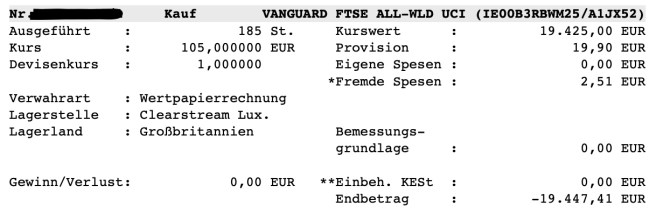 Die Kaufposition für den gesammelten ETF bei Flatex teile ich aber transparent: