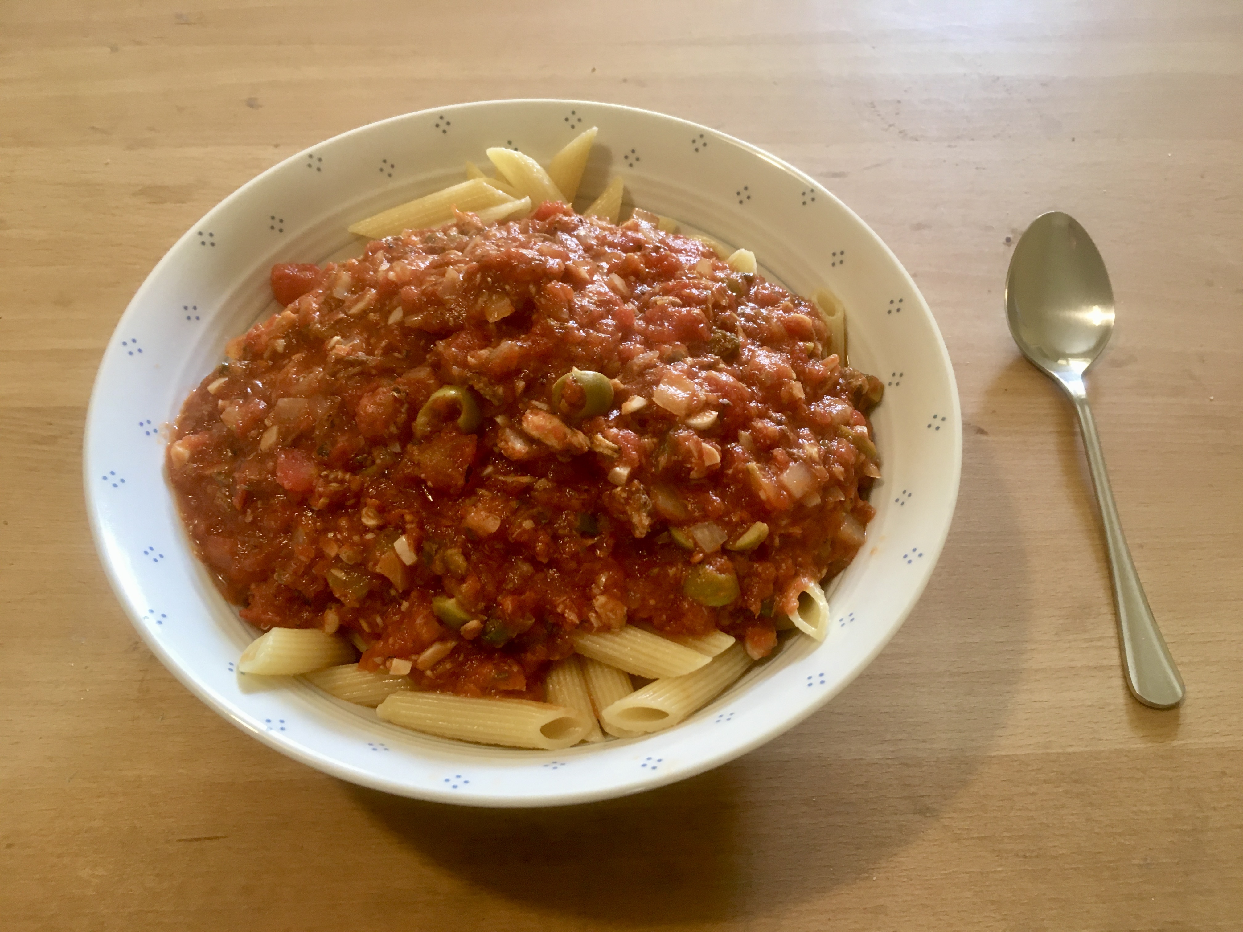 Zu den rohen Paradeisern gab es nun mal wieder eine Fischpasta aus Nuri mit Knoblauch, Zwiebel, Oliven und Kapern. Die sommerliche Hitzewelle für 2022 ist wohl vorbei und das Kochen macht wieder mehr Spaß und der Appetit ist wieder dafür da.