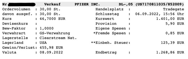 Die Finanzierung erfolgte mit einem Verkauf von Pfizer und eine Miniportion von Orion Office. Pfizer ist eines von vielen Gesundheitsunternehmen in meinem Portfolio das ich seit Phasen mit Viagra und nun Corona kenne. Für mich ist das kein Blue Chip und da erhöhe ich in den USA lieber Johnson & Johnson. Der Gewinn war ok und auf das ATH aktuell zu warten macht auch keinen Sinn.