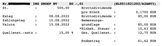 Anfang August 2022 hatte ich mir die ING Group mit á 9,20 EUR ins Depot gelegt um die Halbjahresdividende zu bekommen…