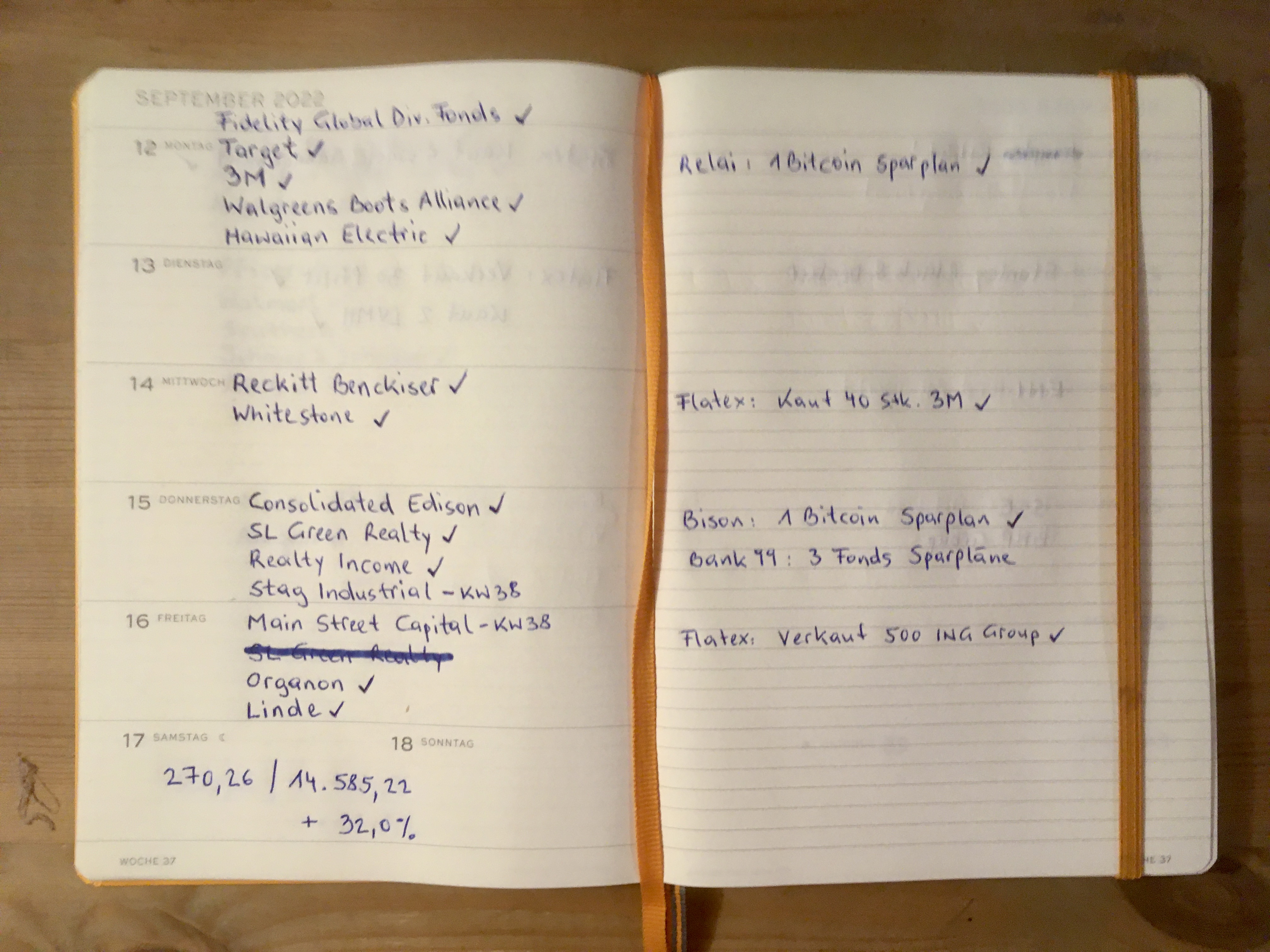 Diesmal einen vollen Kalender mit vielen „kleineren“ Auszahlungen. Die monatlichen Zahlungen von STAG Industrial und Main Street Capital verschieben sich in die Folgewoche 38 weil die Buchungen bei Flatex noch fehlen…
