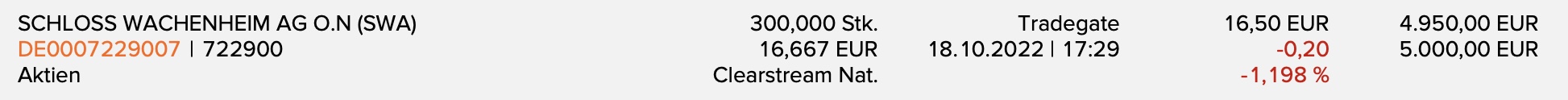Kauf von 200 Stück Schloss Wachenheim AG / DE0007229007 á EUR 16,50: