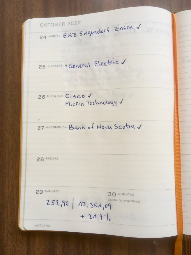 Dividenden Einkommen Kalenderwoche 43 / 2022: