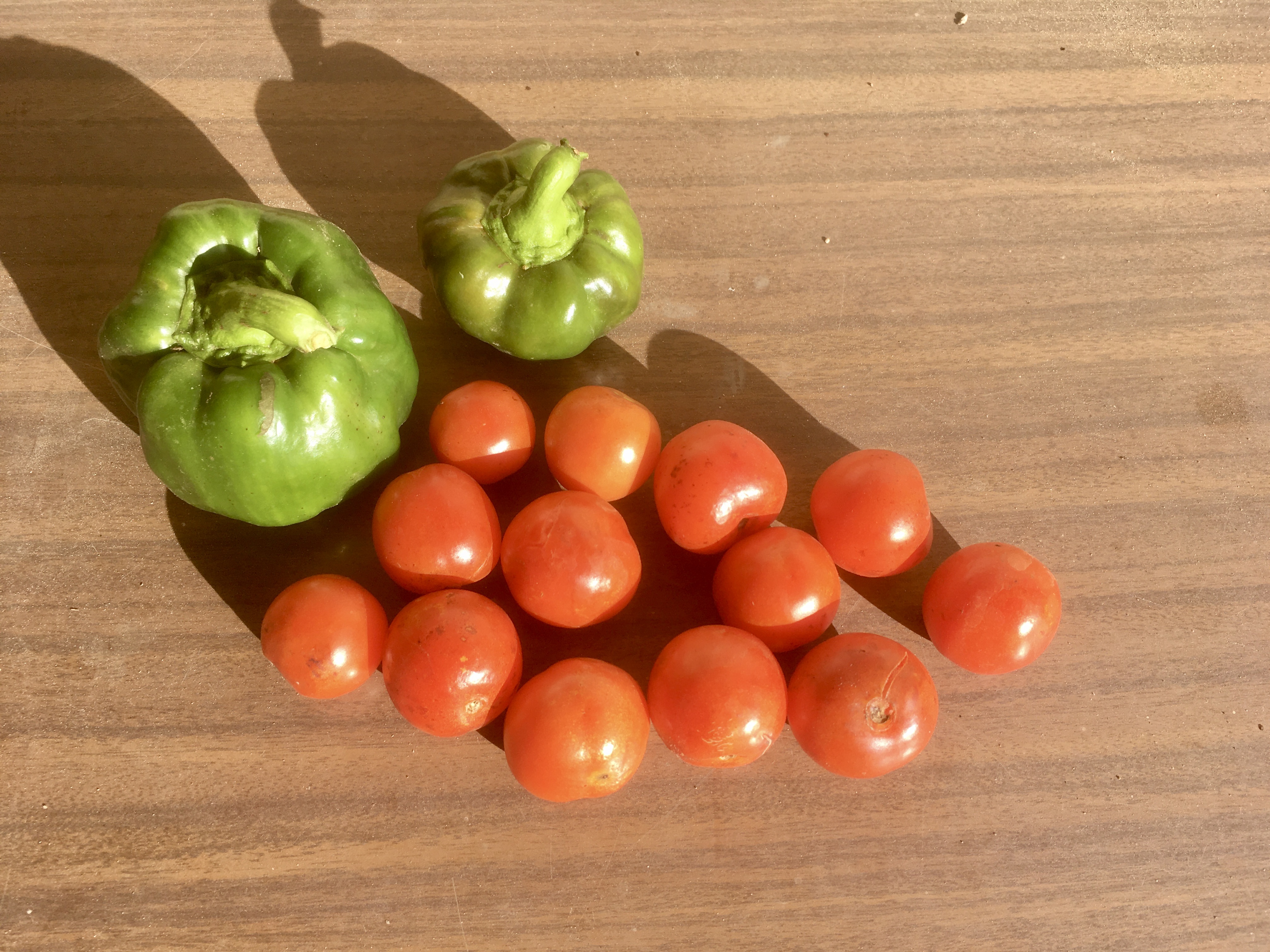 Apropos Arbeit – Anfang der Woche war es mal sonnig und es war höchste Zeit das Gemüsebeet für heuer abzu schließen. Die meisten Pflanzen waren ja schon herbstlich vertrocknet aber ich konnte noch eine letzte Ernte von Paradeiser und Paprika verwenden und die Pflanzen entfernen.