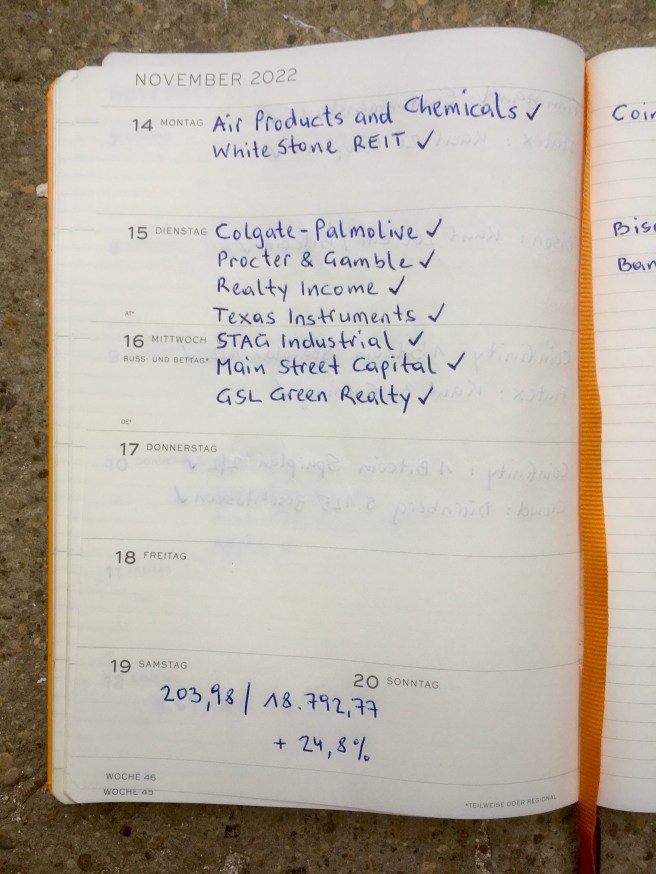 Dividenden Einkommen Kalenderwoche 46 / 2022: