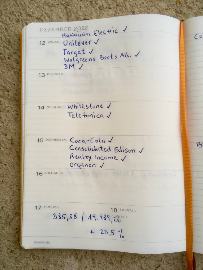 Dividenden Einkommen Kalenderwoche 50 / 2022:
