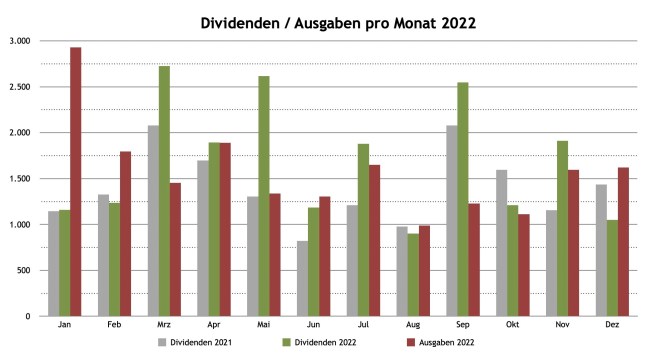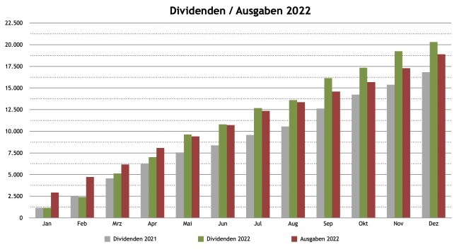 | 2022 | Div. Vorjahr | Div. 2022 | Ausgaben | Monat | in % |