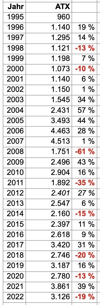 Mein Home Index ATX seit ich meine ersten Aktien 1995 gekauft hatte war heuer mit -19% auch kein Gewinner…