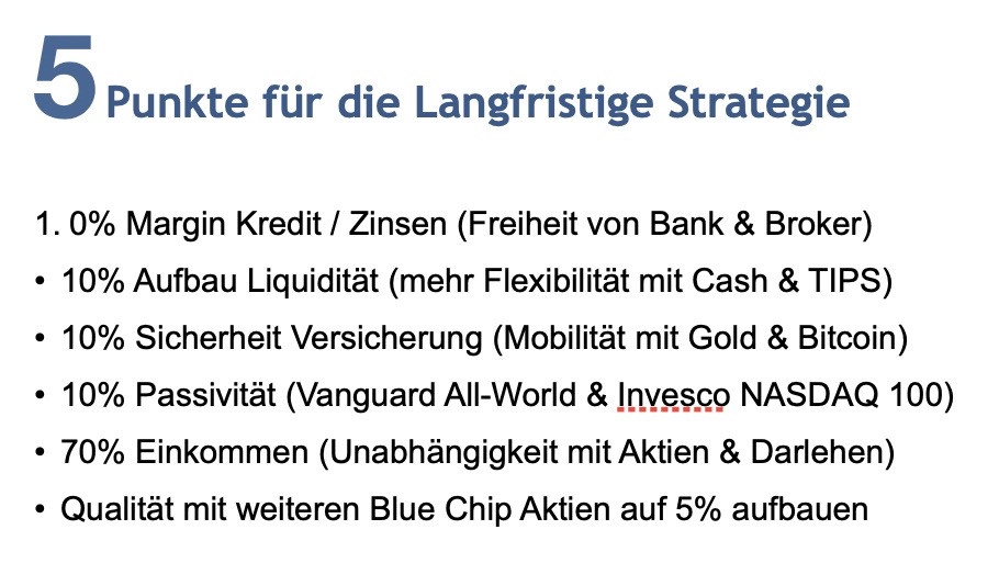 Diesmal fange ich mit meiner digitalen Pinnwand an um meine langfristige Strategie zu dokumentieren. In den letzten 2 Jahren nutzte ich etwas zu leichtfertig den Margin Kredit für Investments und das werde ich beenden.