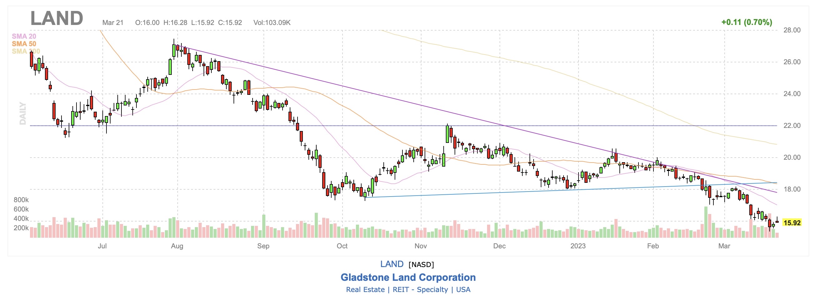 Ist eine Cibus nicht genug? Jetzt eine Gladstone Land. Eine weitere Aktie die aktuell fällt wie ein Stein. Ich dachte Du möchtest von Deinen Aktien leben………