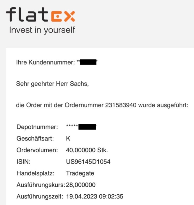 Kauf bei Börse Flatex mit Limit 28 EUR: