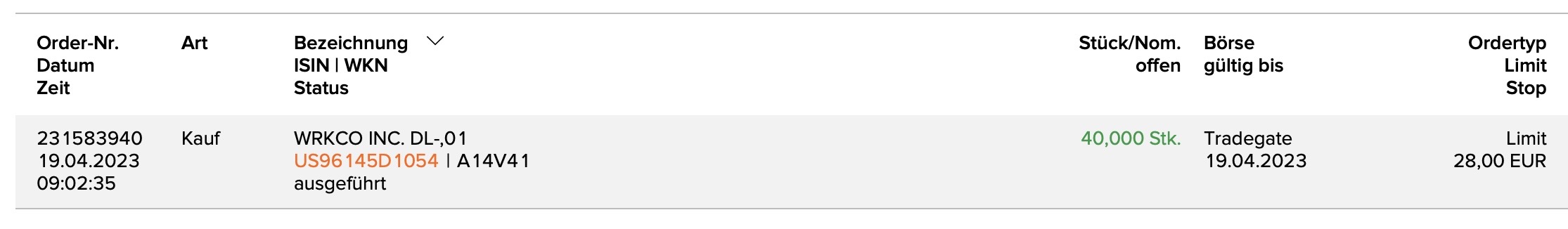 Westrock hatte ich schonmal im Depot aber da sie 2020 einfach mal so die Divi. gekürzt hatten, ist sie rausgeflogen. Vertrauen ist weg, schade.