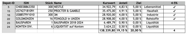 Wichtig war mit 3M an die 4-5% Grenze zu bringen und die positive Liquidität mit rd. 10 TEUR bzw. 1,4% Gewichtung…