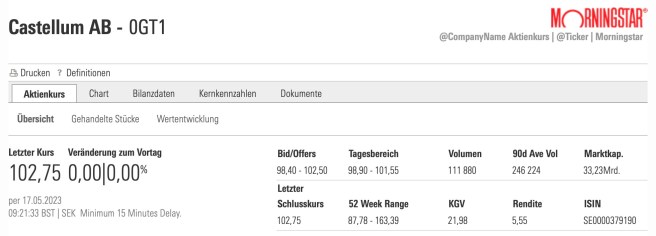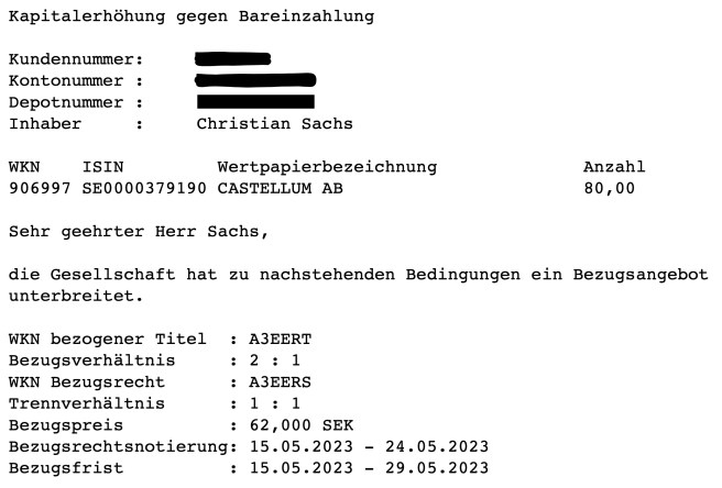 In diesen turbulenten Zeiten kam nun die Info einer Kapitalerhöhung von Castellum in mein Portfolio. Wobei ich anmerken sollte ich habe wegen Risiko und auch zum Kennenlernen auch nur eine Startposition ins Depot gelegt 😅