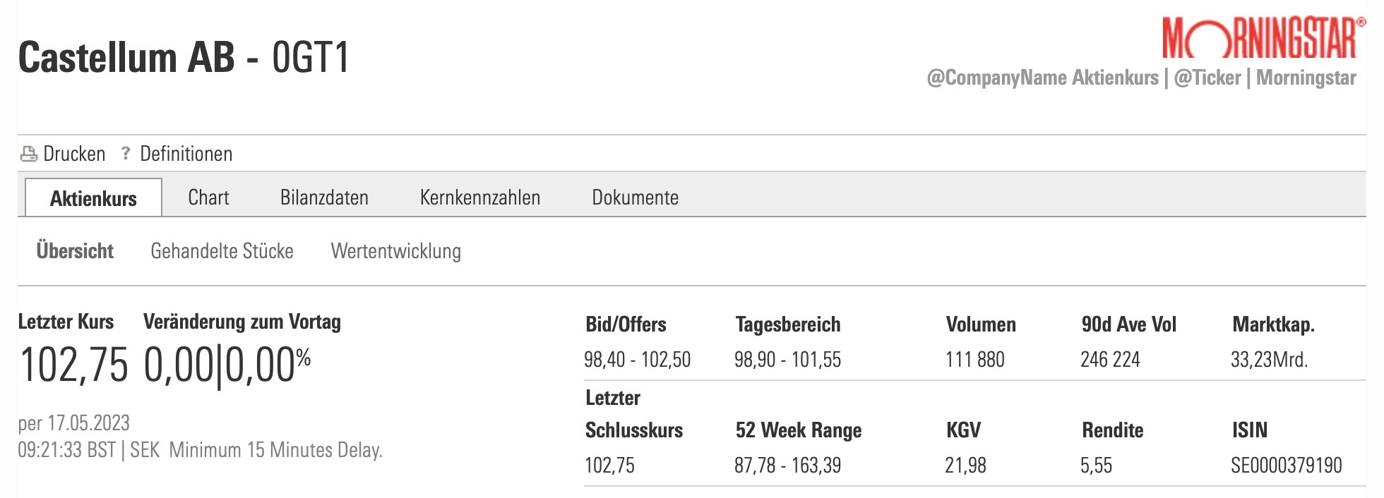 Ein aktueller Check in Morningstar: