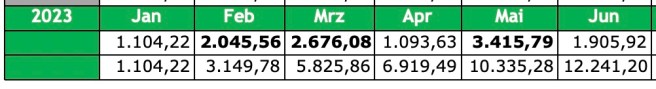 Ein Zwischenstand für die 6 Monate und Juni folgen noch 2 Wochen…