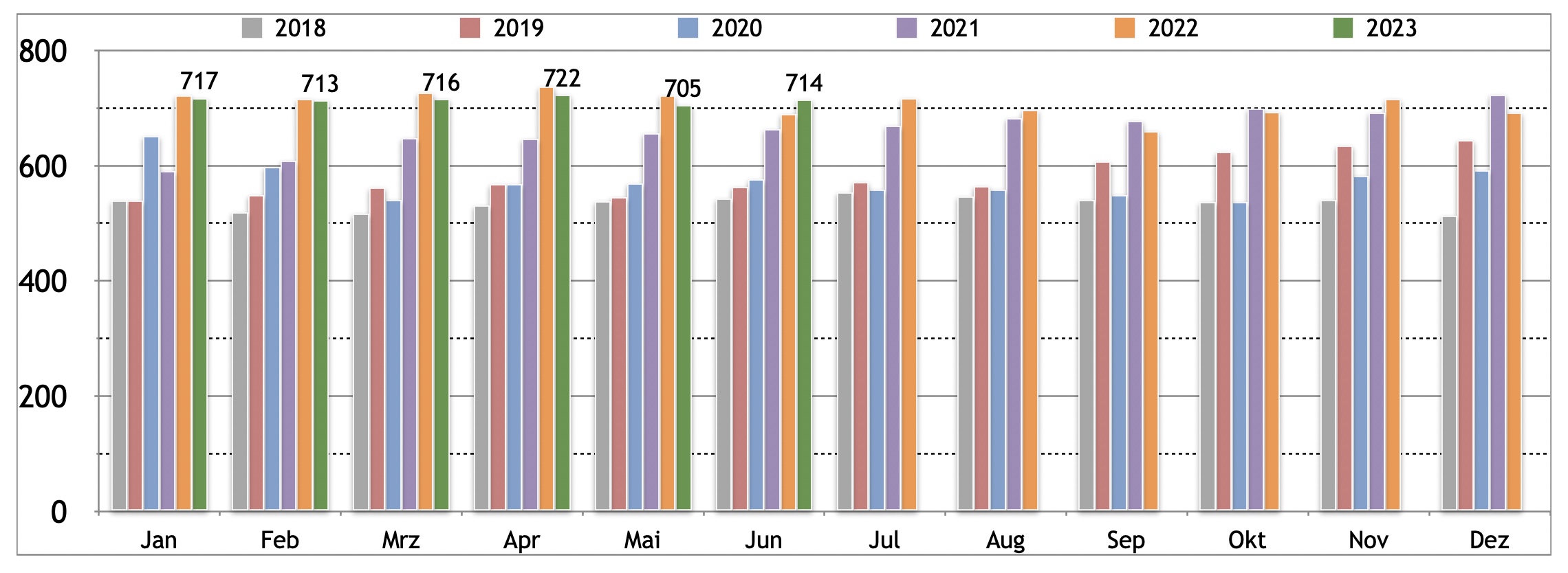 | 2022 | 722.062,92 | 715.405,43 | 725.835,52 | 737.515,12 | 722.140,46 | 688.927,77 | 716.893,96 | 696.127,20 | 659.916,11 | 692.603,58 | 716.221,27 | 691.859,92 | 707.125,77 |