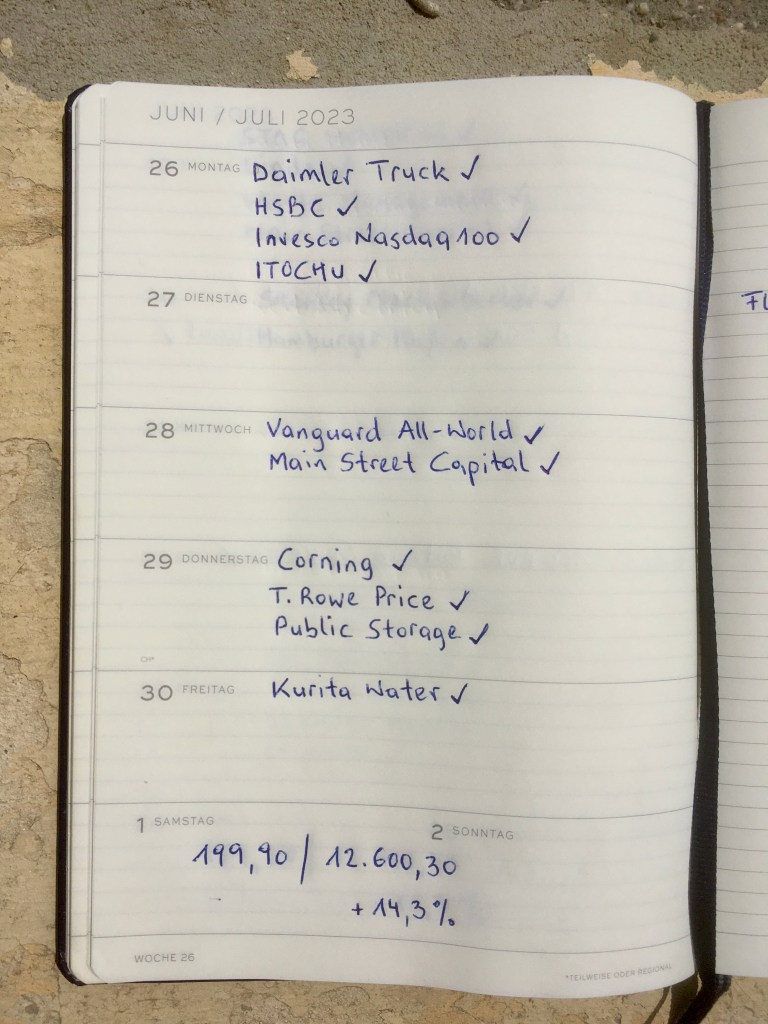 Ob ich diesen Plan für das 2. Halbjahr durchziehen kann weiß ich nicht – wenn es einen Bullenmarkt für Aktien gibt verkaufe ich doch wieder etwas. Aber das entscheidet Mr. Market und auch den kann ich nicht vorhersehen.