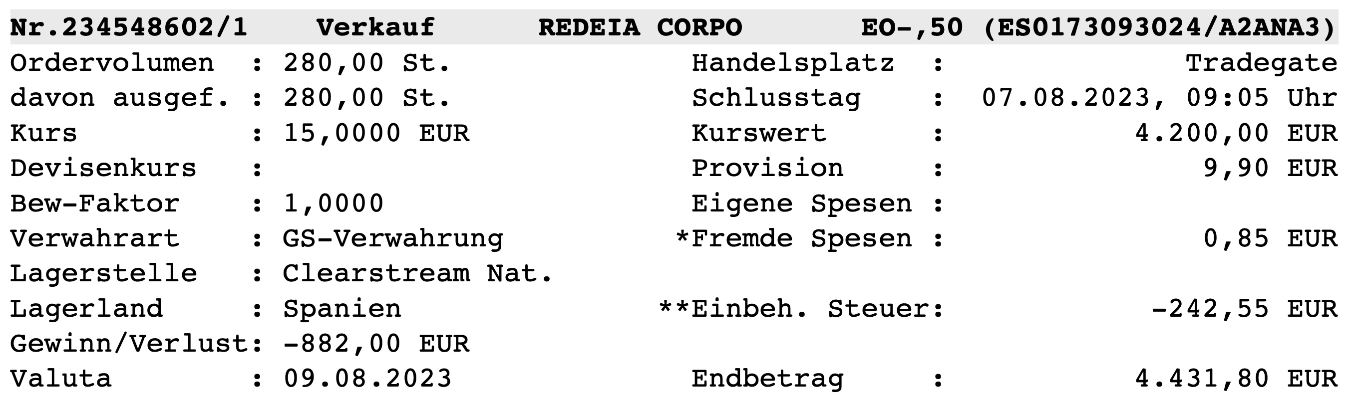 Red Eléctrica (HJ-Dividenden vom 9.1. und 23.7. 2023) von 300 auf 20 Stück 🇪🇸