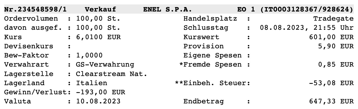 ENEL (HJ-Dividenden vom 25.1. und 26.7.2023) von 200 auf 100 Stück 🇮🇹