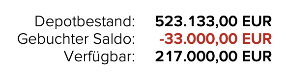 Der Margin Kredit ist damit auf -33 TEUR reduziert –