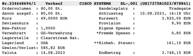 Cisco Systems (quartalsweise 1/4/7/10) von 100 auf 20 Stück: