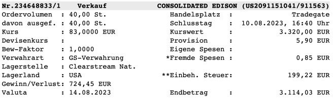 Consolidated Edison (quartalsweise 3/6/9/12) von 50 auf 10 Stück: